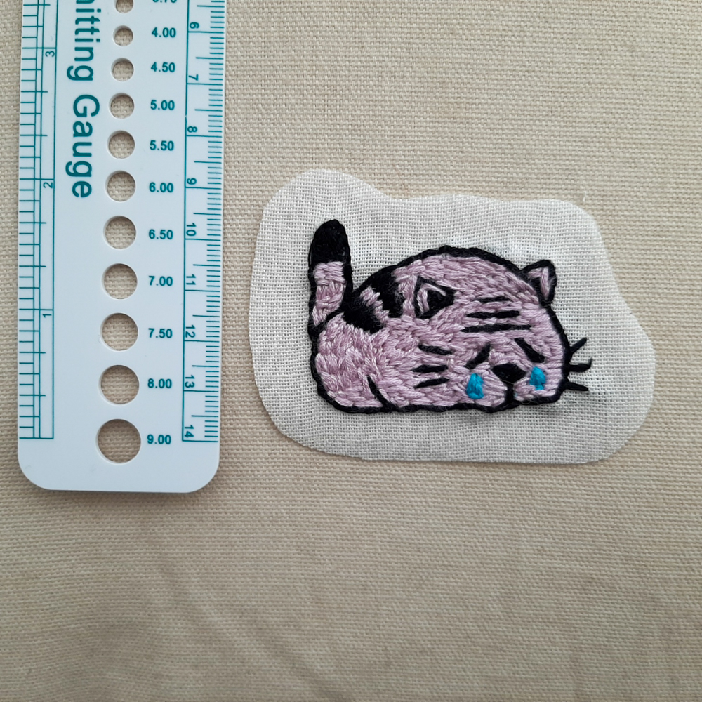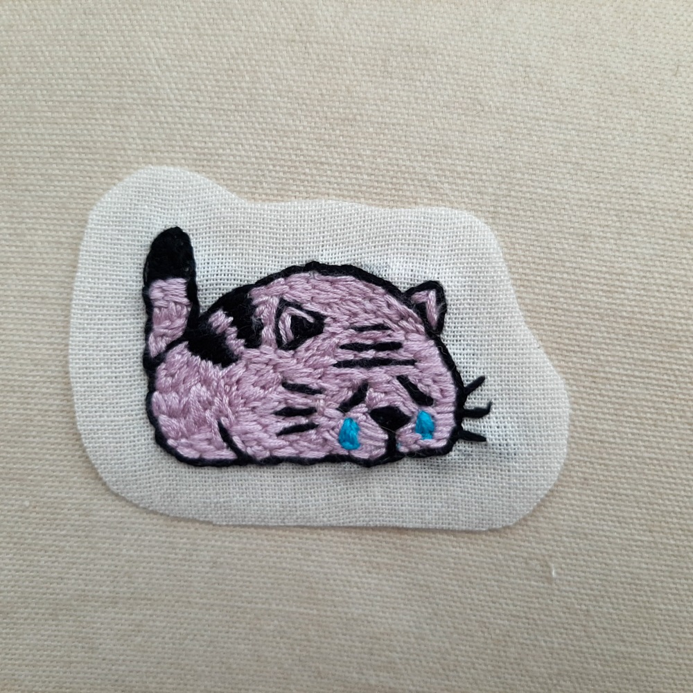 Dramatic cat likes to cry at everything. Pretty relatable. A hand-made embroidered fabric patch. See second image for size.