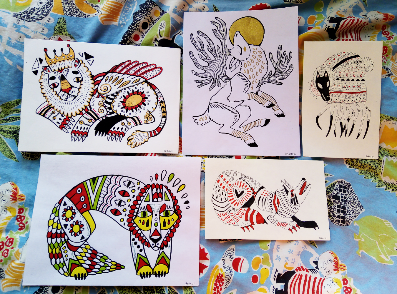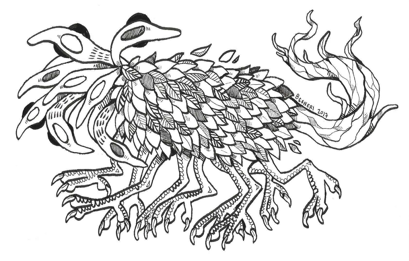 Rustles in the bushes. Original marker drawing. There might be some wear on the edges of the piece, but the drawing itself is in good condition.