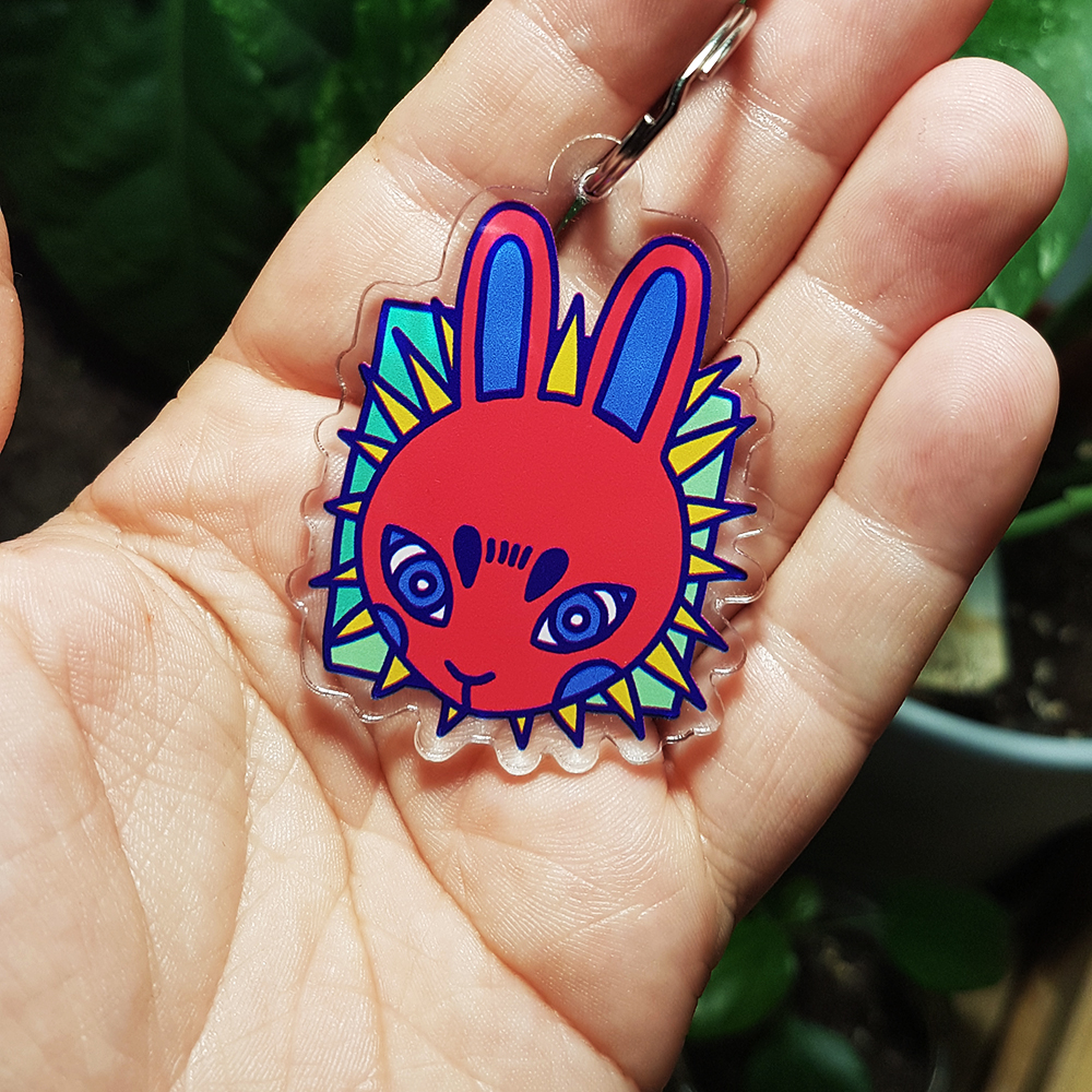 Shocking news: It is a rabbit. One-sided acrylic charm with a split ring.
