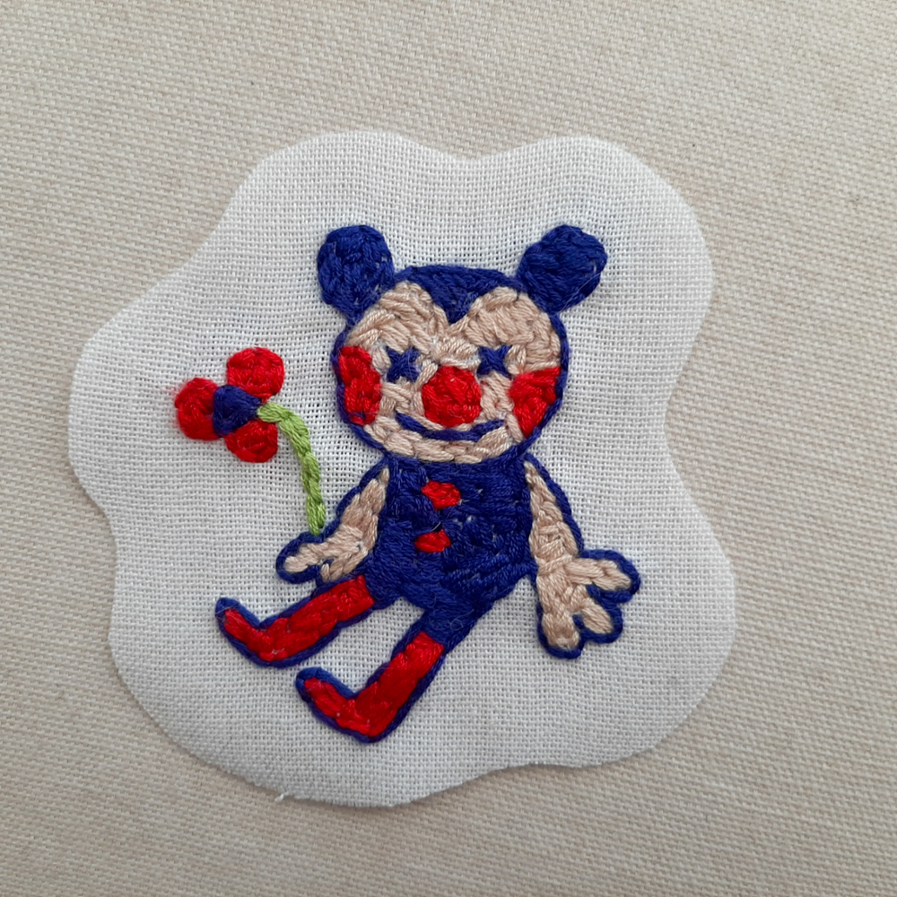 He’s offering the flower to you! Do you accept it? A hand-made embroidered fabric patch. See second image for size.