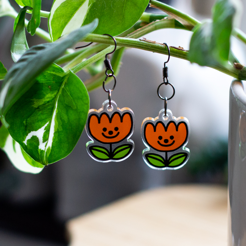 Orange Flower 1'' earrings