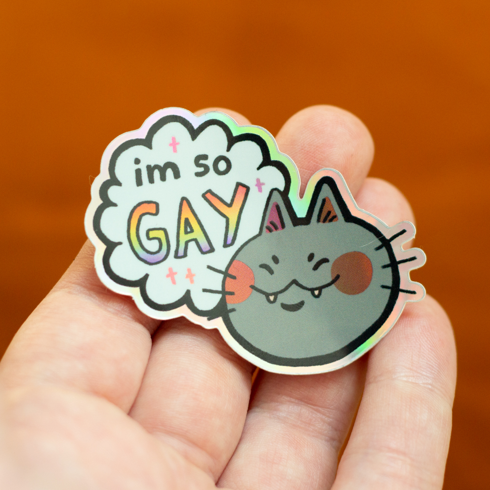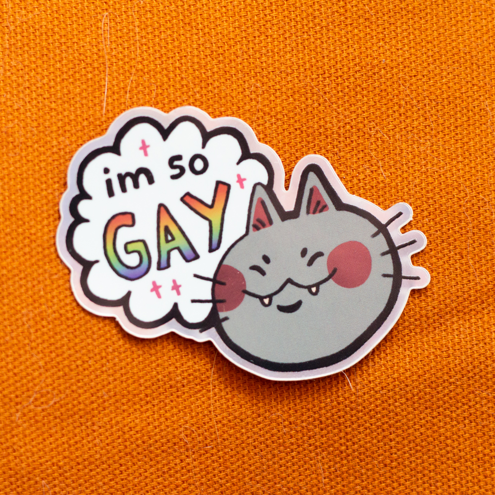 Caution: This cat, indeed, is very GAY. A vinyl sticker suitable for indoor and outdoor use with up to 4 years of outdoor durability.