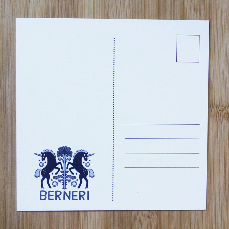Postcards are printed on semi-glossy 250gsm cardboard.