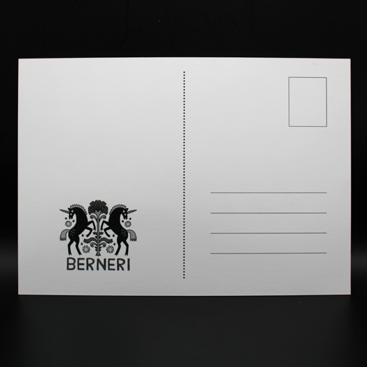 Postcards are printed on semi-glossy 250gsm cardboard.